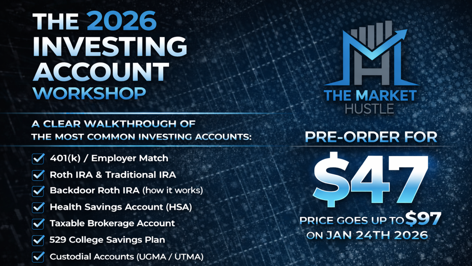 This purchase is a pre-order for the 2026 Investing Accounts Workshop.
